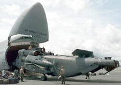 Lockheed C-5 Galaxy เป็นเครื่องขนส่งสัมภาระทางอากาศ ที่ขนส่งสัมภาระ ทางทหารที่ใหญ่ที่สุด เครื่องบินสามารถบินขึ้น และบินลงด้วยระยะทางที่สั้น เมื่อเทียบกับเครื่องอื่นๆ ด้วยการใช้ทั้งประตูด้านหน้า และด้านท้าย ทำให้การขนส่งสามารถ นำสัมภาระขึ้นและลง ในเวลาเดียวกัน