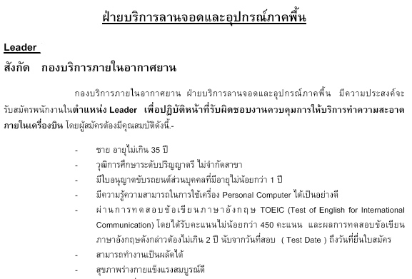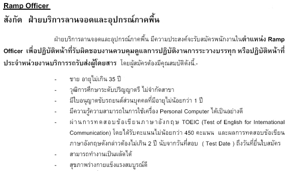 ตัวอย่างการประกาศรับสมัครของ การบินไทย